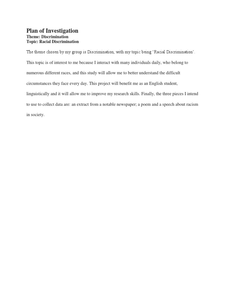 Once you are finished with your plan of investigation then.